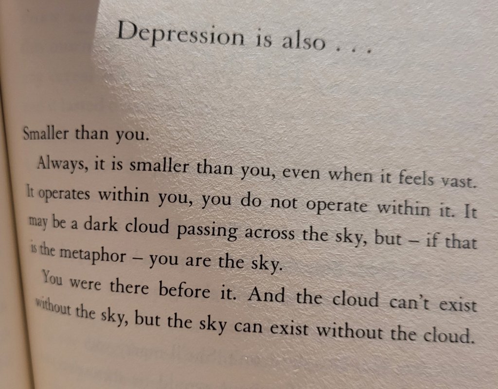 I start flipping through the pages and reading exerpts from it as a gentle way to remind myself that Depression lies and that recovery is possible.