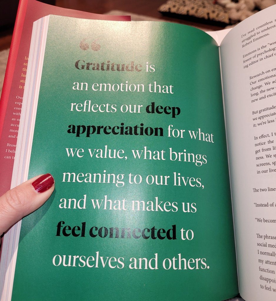 Thank you again to my beautiful, thoughtful, kind, insightful friend for the gift of connection. The only emotion I am experiencing at this very moment as I settle in to read my new book is gratitude and appreciation.