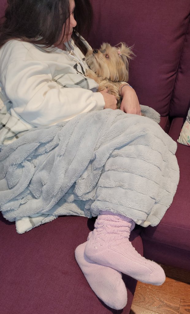 I’m feeling especially sad today and in need of some extra TLC so what better way to find it than snuggled up under a soft blanket, fluffy oversized socks and showered with the affection of my precious fur baby.