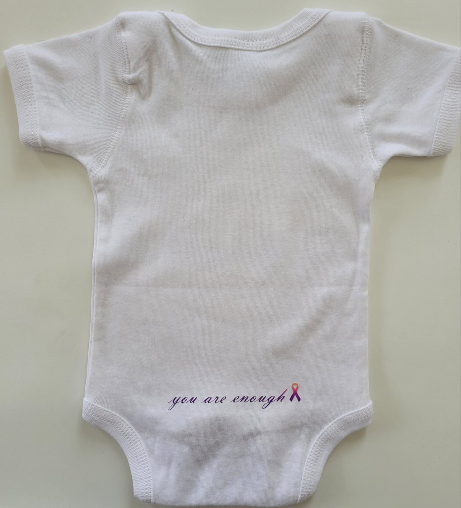 Onesies are available in a variety of colours with my signature/mantra “you are enough” on backside.
