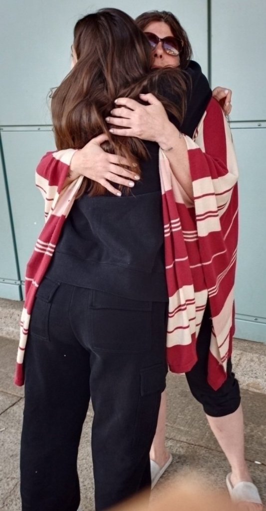 Just another kid about to depart for a trip of a lifetime giving her same anxious Mama a hug goodbye. Have a great trip Hannah! Travel safe.