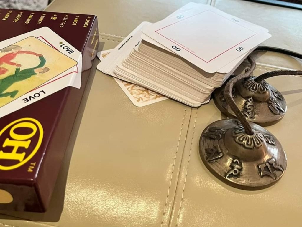 Before we began sharing our stories we were each asked to pick 2 random cards from a deck of “OH Cards”. One card had a word printed along its edges and the other much smaller card had a painted picture on it. These cards are used as storytelling and imagination prompters, creative communication aids and therapeutic tools in both counselling and social settings.