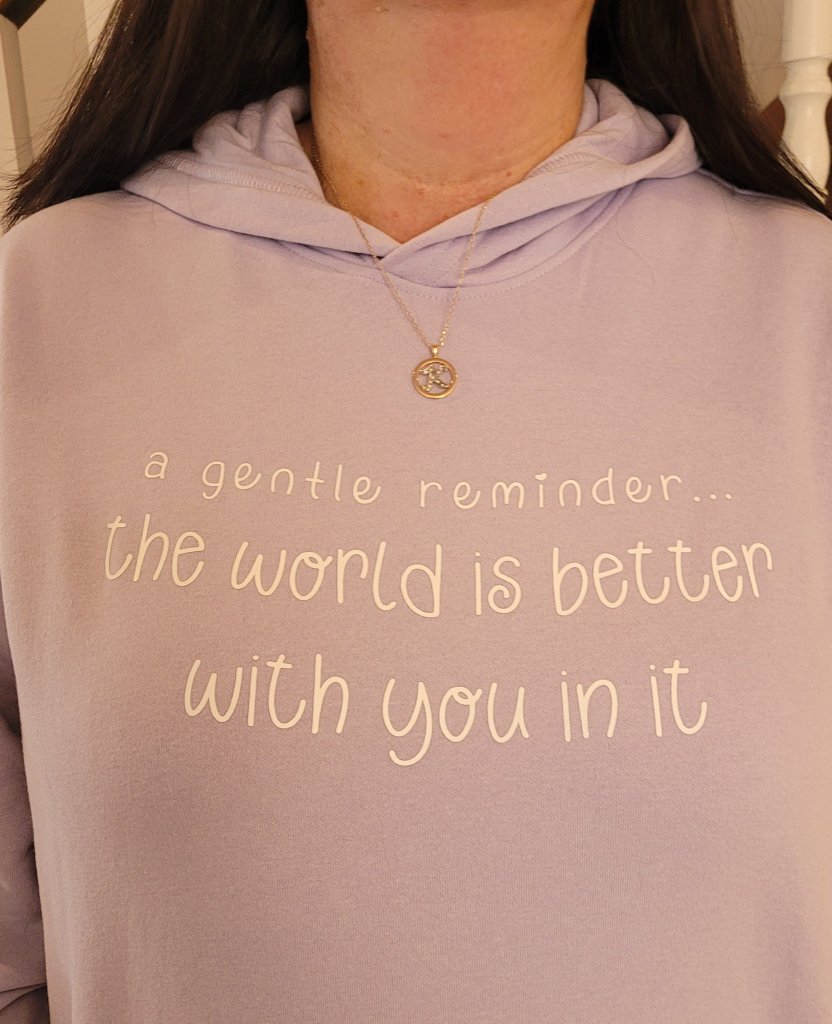 I made this hoodie to wear as a note to self and as a gentle reminder for anyone else who is reading it to know that the world is better with “YOU” in it too.