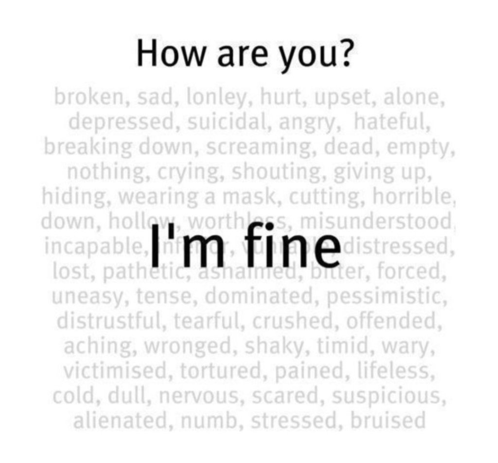 When we answer someone with the words, “I’m fine”, and we are clearly not fine, what we are really expressing to them is that “less is more” and that “simplicity” is appreciated over “complexity”. Sometimes, though, it’s just not enough and that even if the truth hurts, the stigma hurts more.