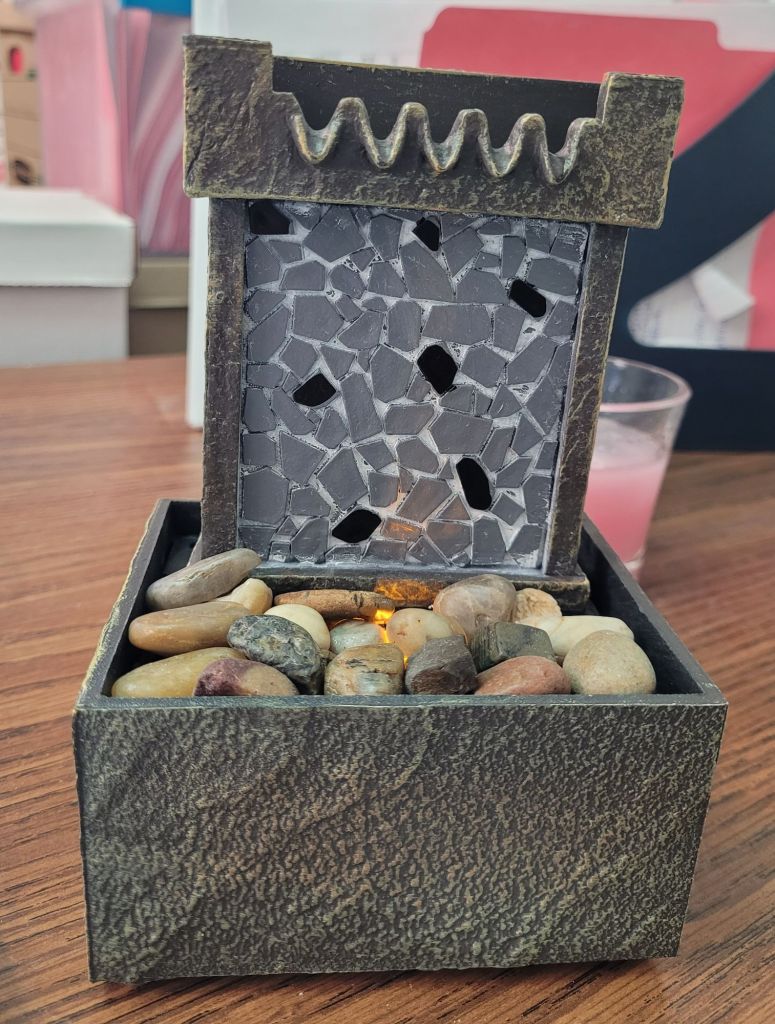 As I try, with great resistance, to settle back into my regular daily routine today, I am finding myself daydreaming of that somewhere and getting lost in the moment. It’s a way more pleasant place to be than caught up in the stress of playing catch up on everything I’ve missed while taking my much needed break from work last week. My anxious mind doesn’t seem to want to focus on the task at hand this morning, but as I sit here, at my desk, daydreaming about that deserted island and wellness retreat in the fresh mountain air, I am allowing the soothing sounds of water flowing from my new meditative rock garden to keep me calm. It is taking my imagination somewhere else. A friend of mine at work gifted it to me just before the holidays. When she saw it, she told me that she thought of me right away. It’s just enough for me to carry on.