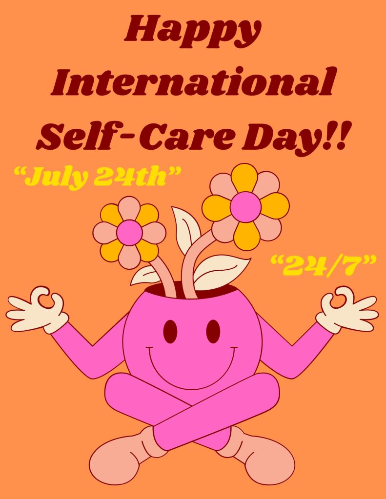 Every year on July 24th, we celebrate “International Self-Care Day”. The date symbolizes that self-care should be practiced “24/7” – 24 hours a day, 7 days a week!!