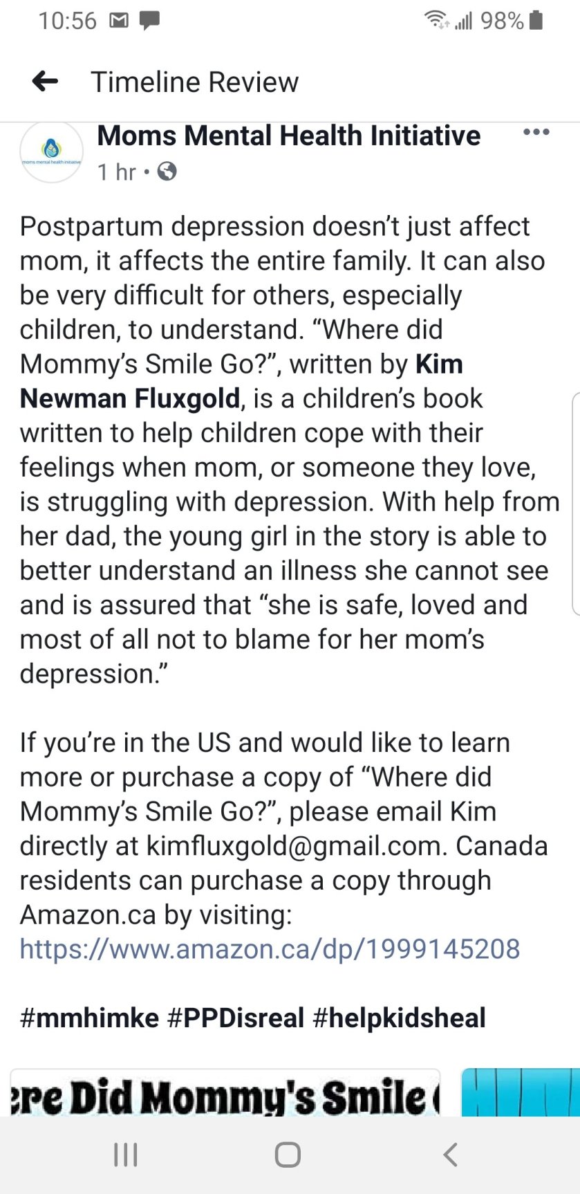Moms Mental Health Initiative is a dedicated non profit organization which help moms (and dads) navigate through one of the most vulnerable stages of life. Postpartum depression is a very real and very serious illness and can affect as many as 1 in every 7 women following the birth of their child often stemming from a combination of hormonal changes, psychological adjustment to motherhood and fatigue. Moms Mental Health Initiative has so kindly shared my book with their community as a helpful tool or resource for families affected by postpartum depression. They offer a lot of helpful information, connect moms with many great resources and provide wonderful peer-driven support. You can reach them at: http://www.momsmentalhealthmke.org or follow them on their Facebook page if you or someone you love is in need of help.