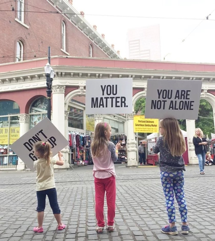 #dontgiveupsigns is a movement which began as I mentioned above in Oregon by one family who upon learning that the suicide rate in their community was rapidly rising, they decided right then and there that they needed to be a part of the solution by spreading love and hope. So as a family they began knocking on strangers doors asking if they would be willing to place a sign on their front lawn for a couple of weeks. And before they knew it their simple act of kindness was becoming an international phenomenon.