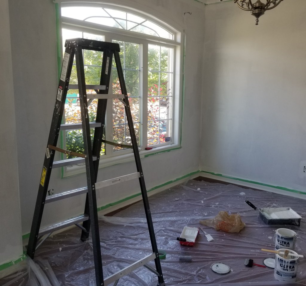 So for now Rachel is trying to make the best of a pretty shitty situation by creating her own oasis in our living room and claiming it as her new workspace and art studio, starting by adding a fresh coat of paint to the walls.