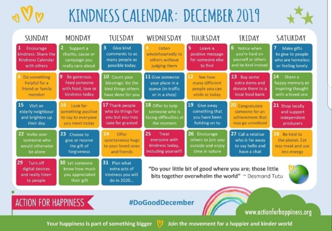 It’s December 1st today and for many of us the month ahead will feel festive, fun and filled with lots of celebration and joy with family and friends but for many other people, the month of December can feel chaotic, challenging, hopeless and very lonely. So let’s spread as much kindness as humanly possible during the month ahead and remember what the month of December is truly about; human connection and bringing good-will and simple joy to others and of course to ourselves as well! So who’s up for the challenge?
